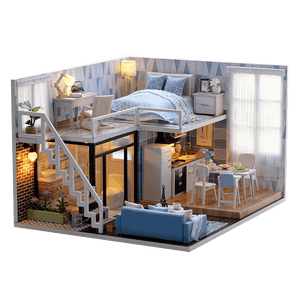 DIY Miniature Loft-Type Blue Apartment Dollhouse